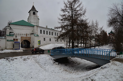 По приезду домой родители рассказали(недавно ездили на теплоходике до Ярославля), что храм, от которого открывается обзорный вид на комплекс – это полностью новодел, включая архитектуру. По-больше бы таких новоделов, он полностью соответствует духу города и его архитектуре, красив, гармоничен, и веет от его строгости древностью. Говорят, построен полностью на деньги одного частного спонсора.